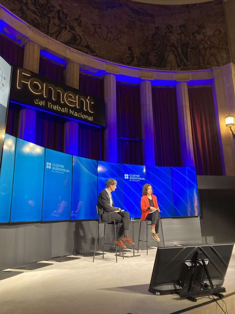 María Coronado, directora Audiovisual de la SETT; y Gonzalo de Pedro Amatria, asesor de la Secretaría de Estado de Digitalización e Inteligencia Artificial del Ministerio para la Transformación Tecnológica y de la Función Pública, fueron los ponentes en este encuentro que tuvo lugar en el Auditori Foment del Treball de Barcelona.